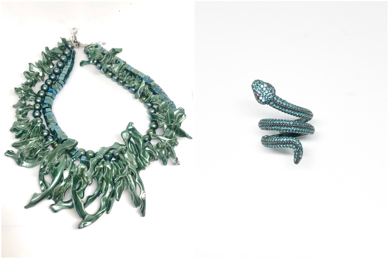 Yaşam gücünü sembolize eden yeşil tonlarda doğaltaşlar, size doğanın, büyümenin ve gelişimin güçlü enerjisini yansıtıyor bu koleksiyonda. Doğanın eşsiz dokuları ile doğaltaşların buluşması teması bu parçalarda işlenmiş. Deri ve gümüşleri uçuk haki tonlarla birleştiren tasarımcı, her sezonda olduğu gibi bu sezon da özgürlüğü çağrıştıran kelebeklerine de yine yer vermiş.