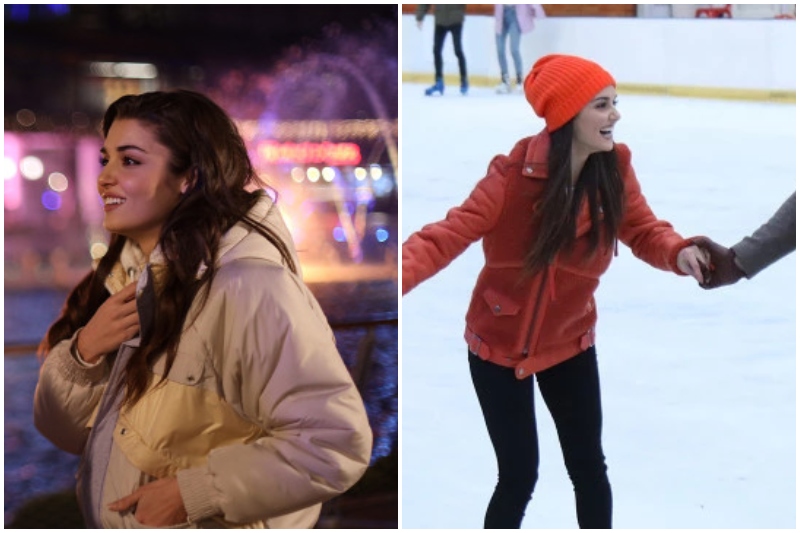 Buz pateni sahnesindeki turuncu ceketi ise Emre Erdemoğlu tasarımı. Eda’nın ceketi tamamlayan turuncu beresi de Mavi‘den.