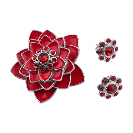 325 ayar gümü?ten elde edilen bu el yap?m? set; deri choker, swarowski ta??n süsledi?i bir lotus çiçe?i, bir çift parfüm pedi ve parfüm ?i?esi yer al?yor.