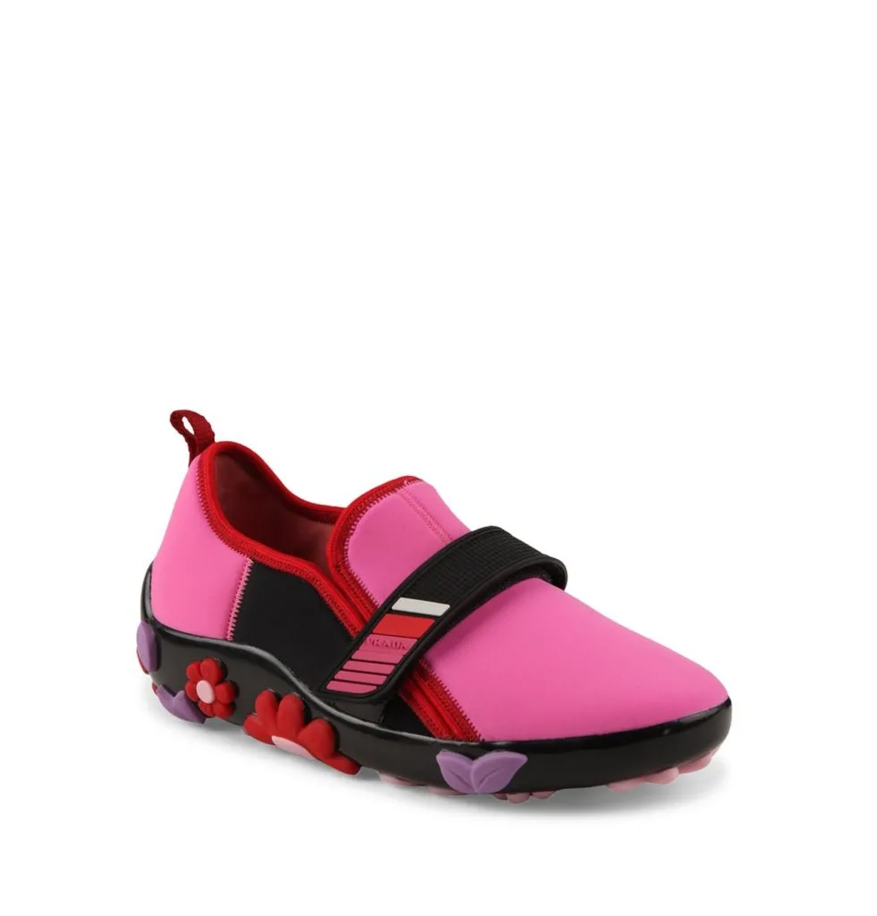 Prada’s Multicolor Flower-Embellished Trainers Siyah jean ve denim ceketle kombinleyin.