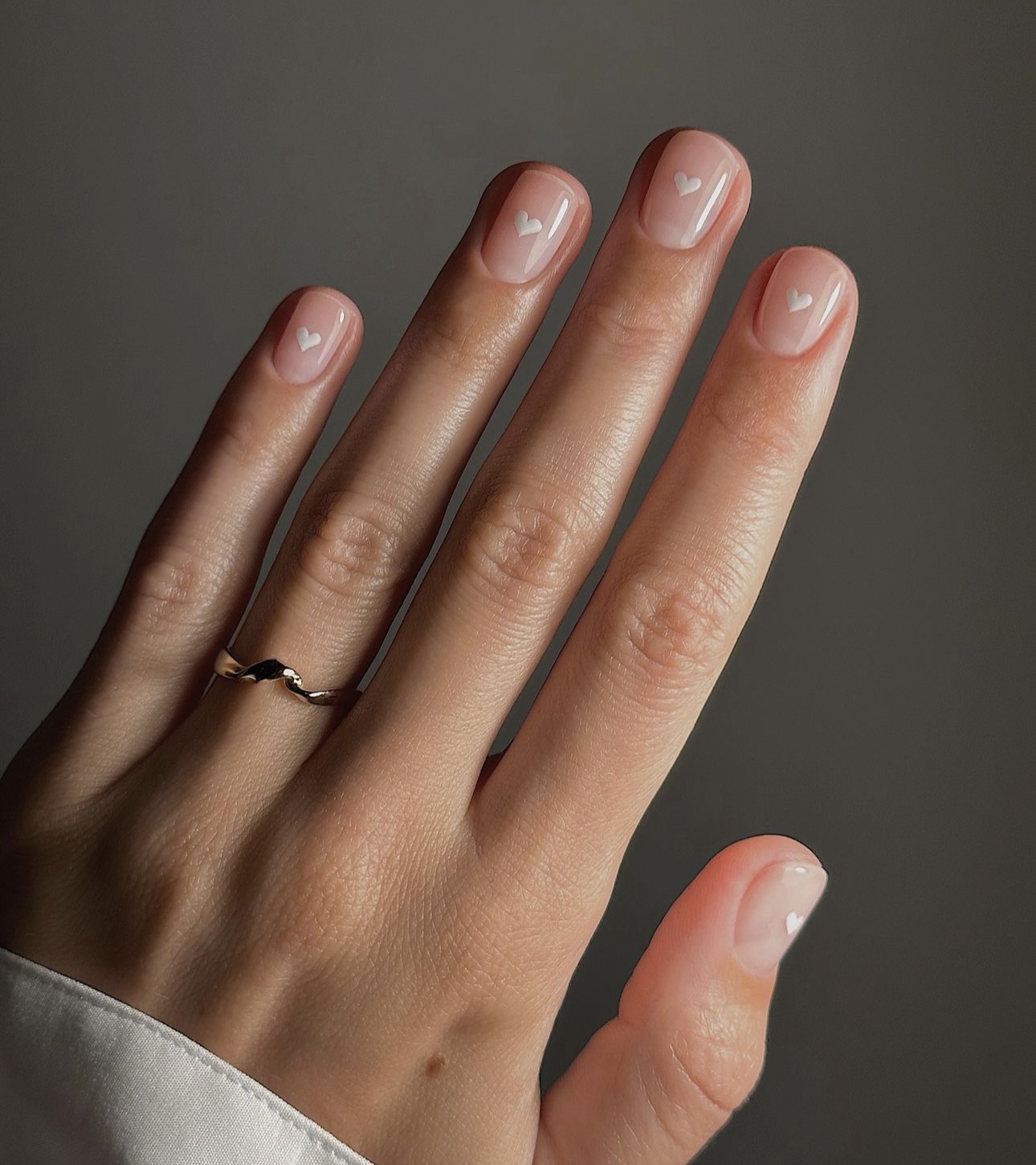 Şeffaf oje üzerine minik bir kalp figürü eklemeye ne dersiniz? Sezonun en zarif nail art’larından olan bu model, tertemiz tırnaklarınıza zarif bir dokunuş katacak.