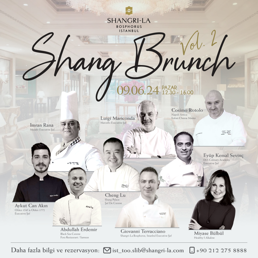 9 Haziran’da şehrin kalbi Beşiktaş’ta yer alan IST TOO’da gerçekleşecek Shang Brunch Vol.2’de; İtalyan mutfağından Hint mutfağına, Çin mutfağından Karadeniz mutfağına kadar geniş yelpazede sunulacak lezzetler, brunch deneyimine yeni bir boyut katacak. Shang Brunch Vol.2’de; Shangri-La Bosphorus, Istanbul Executive Şef’i Giovanni Terracciano ve Shang Palace Chef de Cuisine’i Lu Cheng, İtalyan mutfağını temsilen Marcello Executive Şef’i Luigi Mariconda, Hindistan mutfağını temsilen Musafir Executive Şef’i Imran Rana, Türk mutfağını temsilen EKS Mutfak Akademisi Şef’i Eyüp Kemal Sevinç ve Olden 1772 Executive Şef’i Aykut Can Akın, Karadeniz mutfağını temsilen Fora Samsun Şef’i Abdullah Erdemir, İtalyan peynirleri sunumuyla Napoli Antica Şef’i Cosimo Rotolo ve Healthy & Alkaline kategorisini temsilen Miyase Bülbül yer alacak.