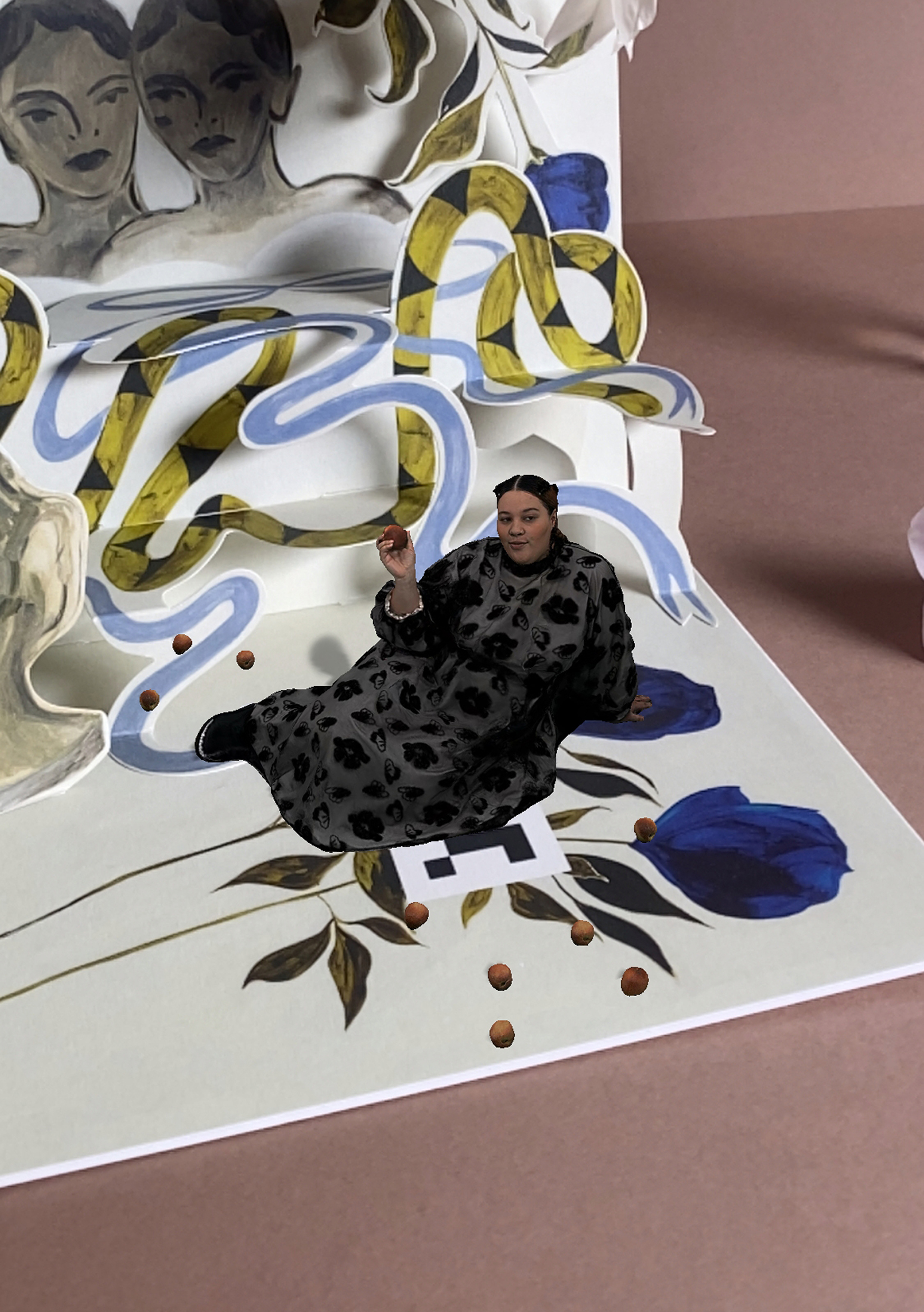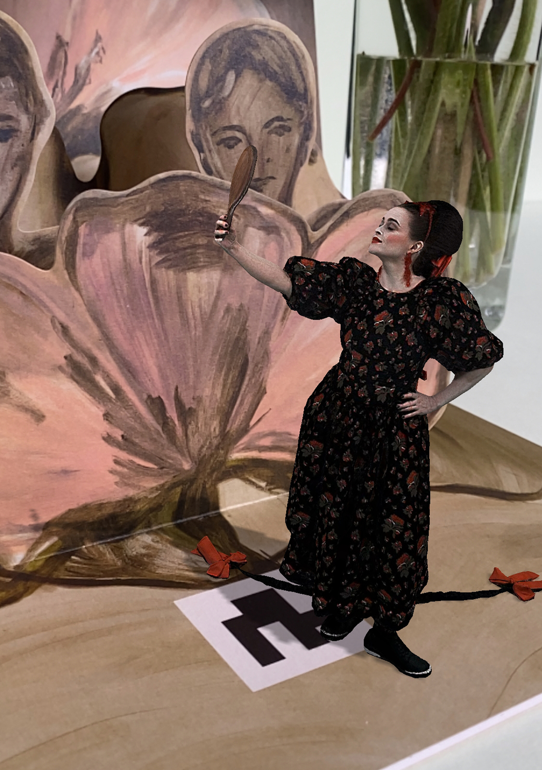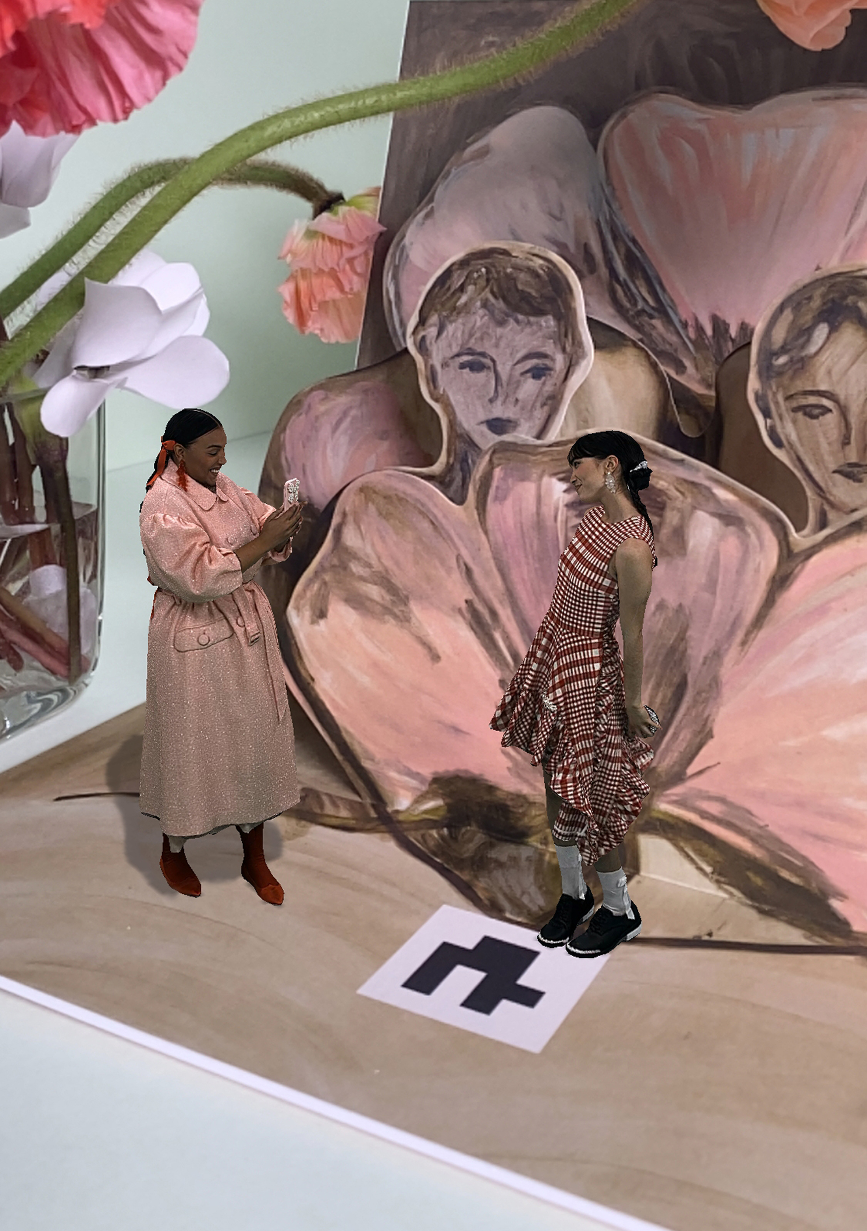 Bu dijital deneyim, sınırlı sayıda üretilmiş, Simone Rocha x H&M kampanyasında da yer alan İngiliz ressam Faye Wei Wei’yle ortak çalışma sonucu yaratılan çok güzel bir kitap vasıtasıyla gerçekleştirildi. (Rocha’nın sanatçılar ve imaj yaratıcılarıyla basılı malzeme yaratma geçmişine bir selam niteliğinde). Wei Wei’ nin beş farklı karmaşık resmi kitapta yer alıyor ve Simone Rocha x H&M koleksiyonunu AR’da modelleyebilmek için QR kodlarıyla sayfada hayat bulan bir grup yetenekli insanın karakterlerinden oluşan pop-up fonlar olarak hizmet ediyorlar.