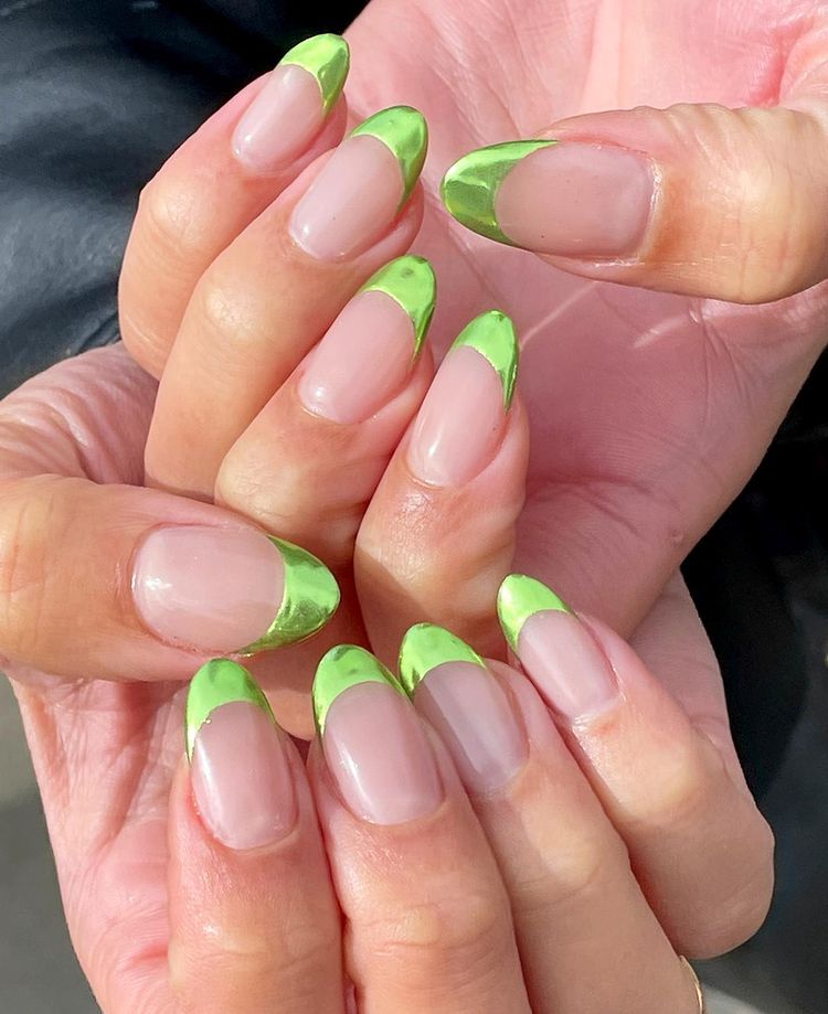 İlk olarak, inci pembesi modeller aracılığıyla nail art dünyasına adım atan krom modeller, sonbahar aylarına birkaç güncellemeyle giriş yapıyor. Soğuk aylarda özellikle yeşil, mavi, gümüş ve altın rengi modellerin bir adım öne çıktığı krom tırnaklar, en az bizim kadar Hailey Bieber ve Dua Lipa gibi isimlerinde yakın markajında.