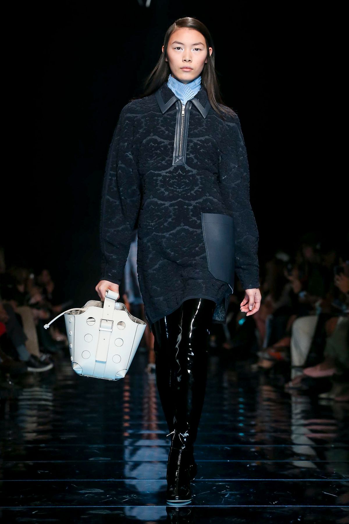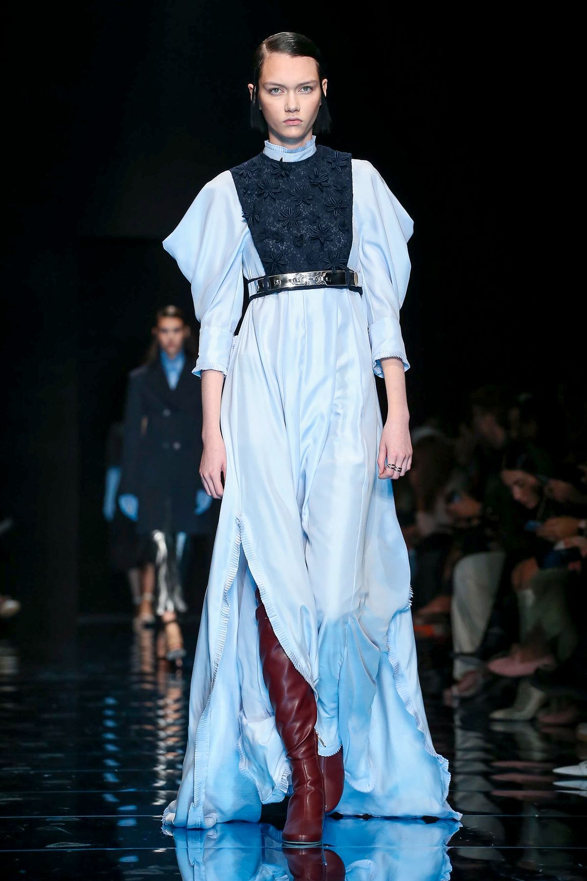Podyumda, markanın daimi sembolü olan dış giyim odak noktasında… Pelerinler, mantolar, ceketler ve yağmurluklar alışılmışın dışında düğmelerle karşımıza çıkarken, abartılı omuzlar, çıkarılabilir yakalar ve dekoratif detaylar ile güncel bir görünüm kazanıyor.