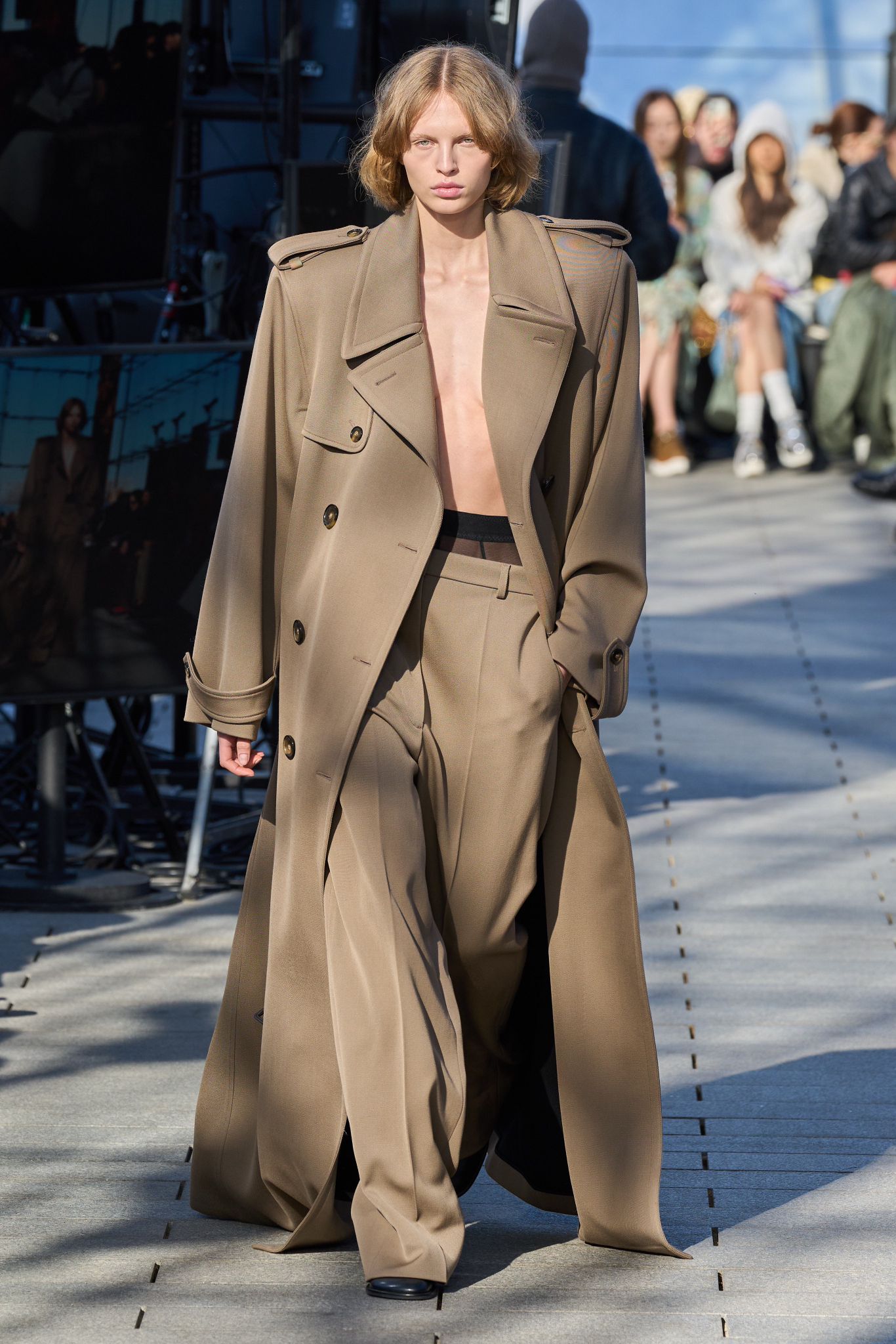 İngiliz tasarımcı her zamankinden daha gösterişli bir şekilde, coşkun ve erkeksi bir terzilik benimseyerek kadınları davasına çağırıyor. Minimalist jarse elbiseler “ramrod” omuzlardan sarkıyor ve eko deriden yapılmış paltolar, ceketler ve etekler; rengarenk ilmekli örgü atkılar ve elbiselerle –ölü hayvanlar dışında– gerçek olanı çağrıştırıyor.