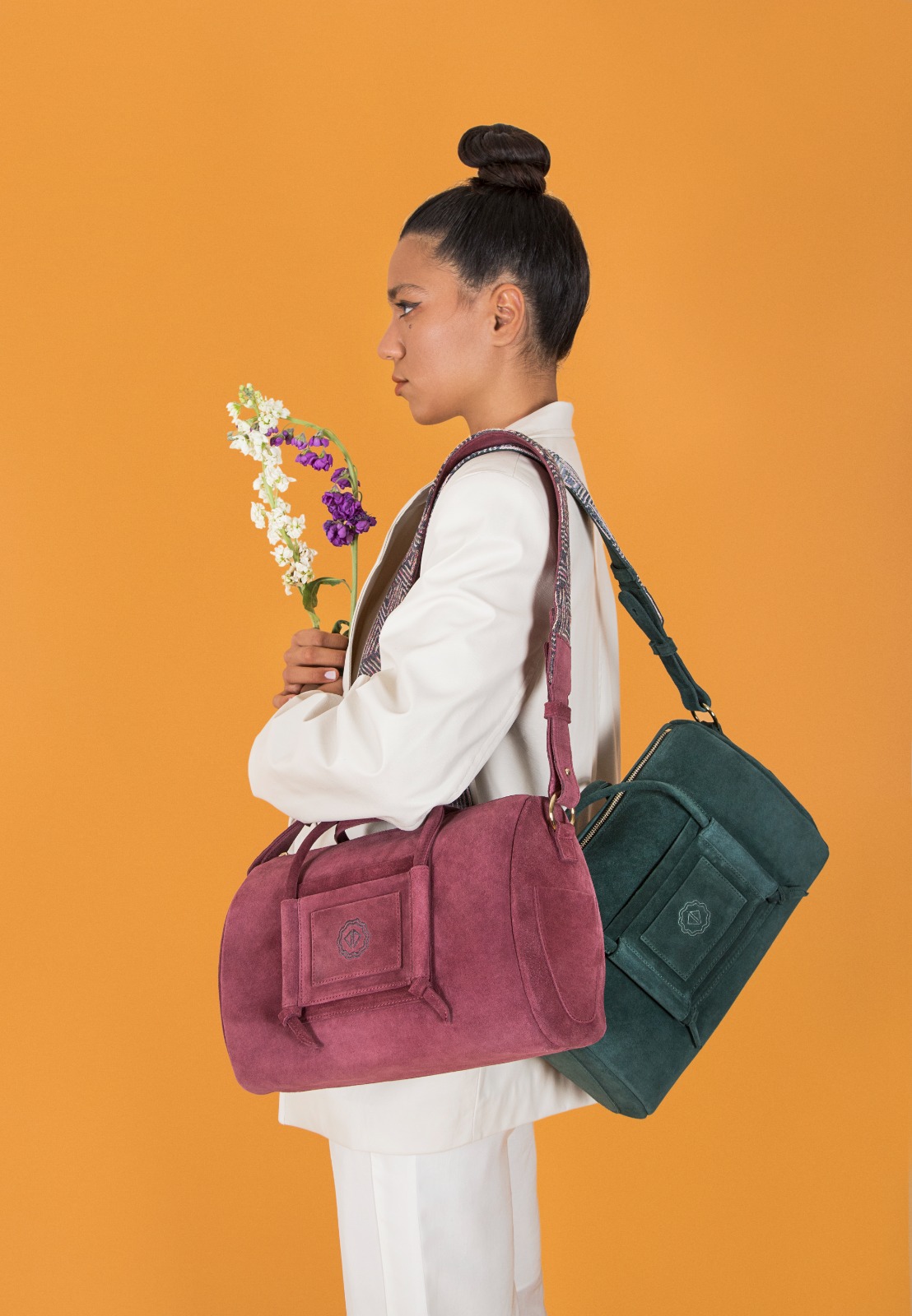 Koleksiyonda sezonun modası olan baget çantaları yeniden yorumlayarak imzasını atan D’ylla Atelier eklediği örgü kumaş tasarımlarına rengarenk deri ve süetlerle bir araya getiriyor. Farklı doku ve renklerin birlikteliğini ise koleksiyonda Fiona modeli temsil ederken, ortaya çıkan parçaların hepsi tecrübeli zanaatkar deri ustalarının el işçiliğiyle son formlarına kavuşuyor. Hızlı üretime ve tüketime karşı moda algısını savunan D’ylla Atelier’ın sınırlı üretimdeki yeni koleksiyonuna ulaşmak için www.dyllaatelier.com adresini ziyaret edin!