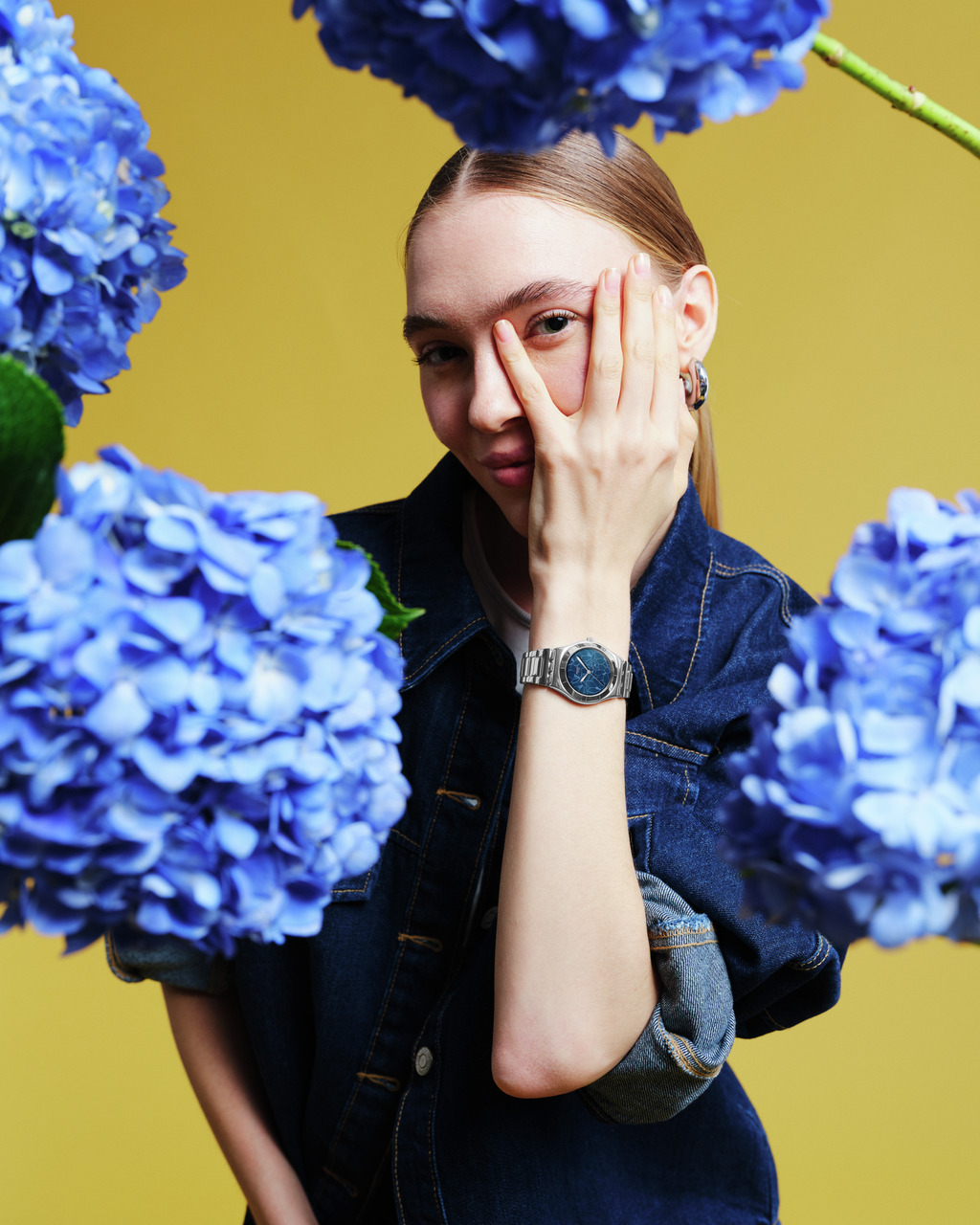 Kişisel başarıyı simgeleyen çiğdem çiçeğinden esinlenen Petal Frenzy saati, göz alıcı mavi tonlarıyla öne çıkıyor. Metal bilezik ya da mavi deri kayış seçenekleriyle her kombine taze ve bahar havası katıyor.