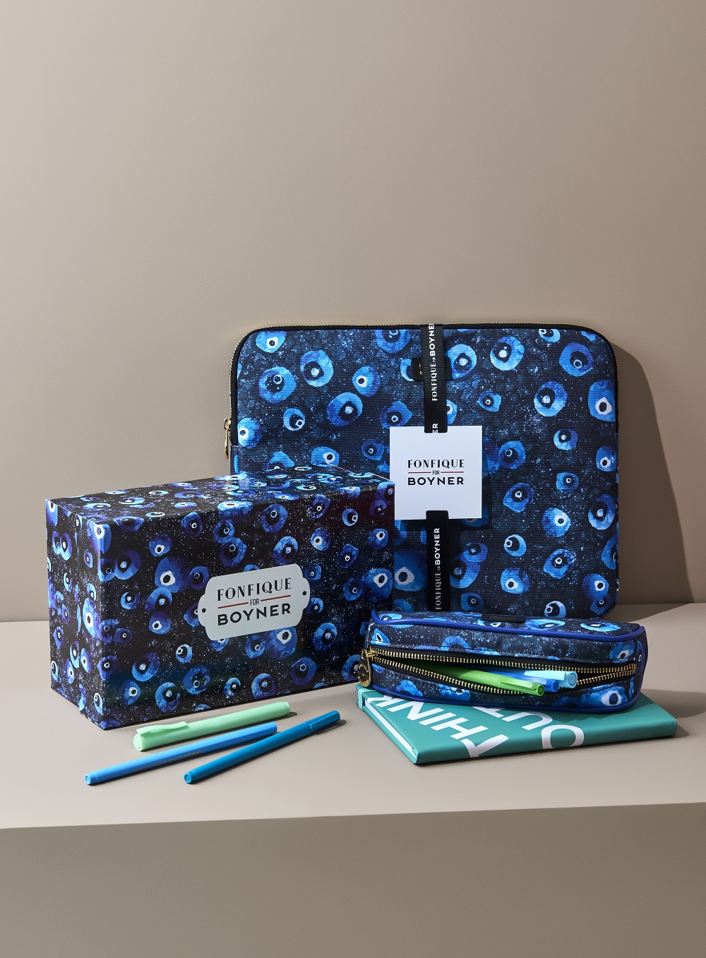 Renkli ve neşeli tasarımları ile dikkat çeken Fonfique for Boyner koleksiyonumuzda her yaş grubunun kullanabileceği farklı boyutlarda organizerlar, makyaj çantaları, laptop ve tablet kılıfları, clutchlar, bel çantaları, defterler, kalem kutuları ve bozuk para cüzdanları yer alıyor.