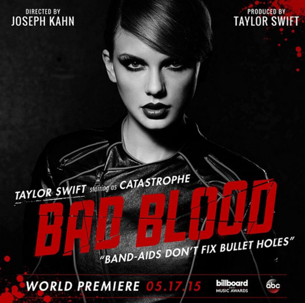 Taylor Swift’in uzun süredir merakla beklenen ve klipte yer alan isimlerin promo fotoğraflarıyla uzun süredir gündemi meşgul eden yeni klibi Bad Blood yayınlandı. Dün düzenlenen Billboard Müzik Ödülleri’nde dünya prömiyeri yapılan ve yönetmenliğini Joseph Kahn’ın üstlendiği video klipte; Selena Gomez, Gigi Hadid, Cindy Crawford, Cara Delevingne, Lily Aldridge, Martha Hunt, Hayley Williams, Jessica Alba, Lena Dunham ve Karlie Kloss gibi pek çok ünlü isim yer alıyor.
