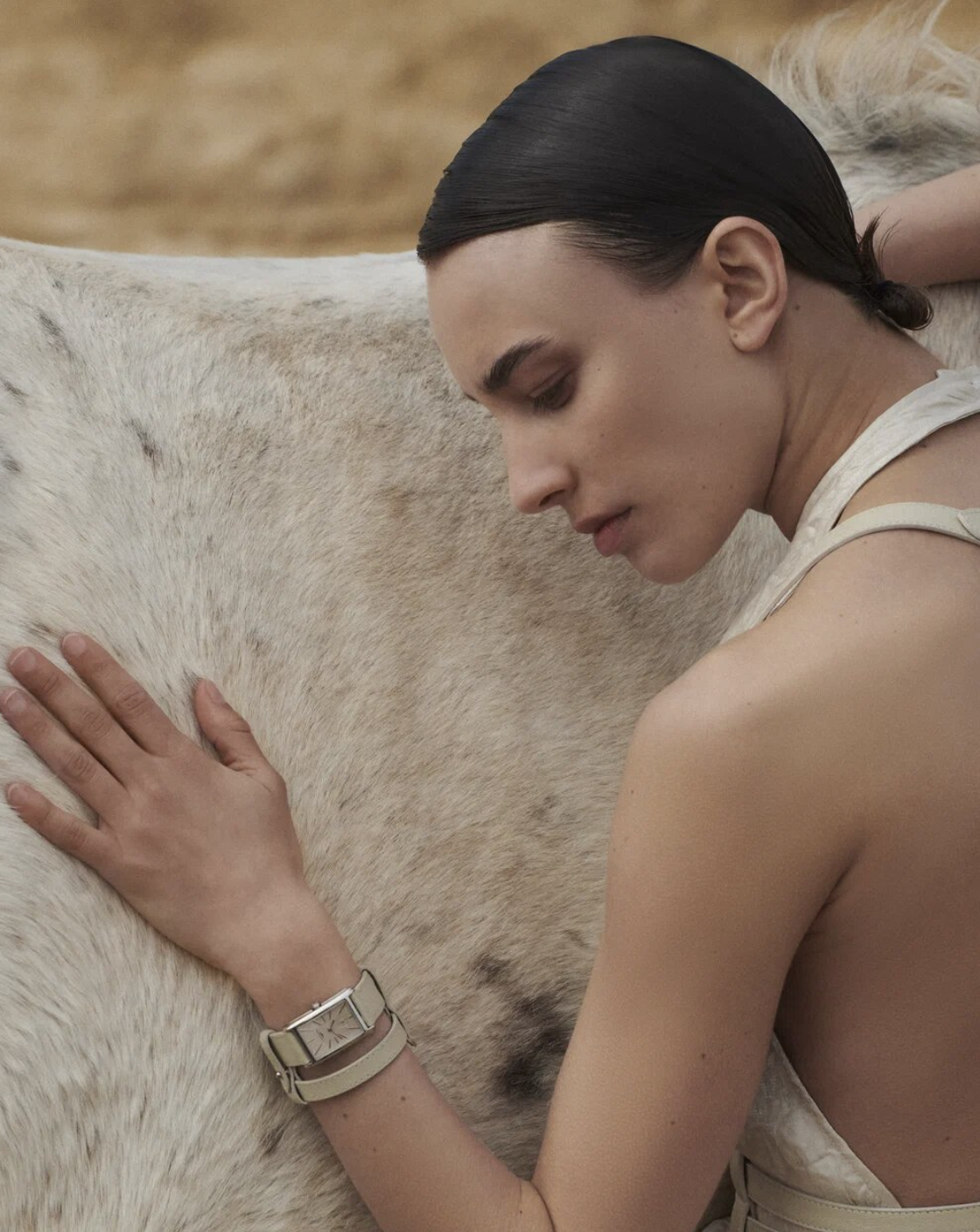 Atı binicisiyle bütünleştiren, atın başını ve boynunu süsleyen bu olmazsa olmaz aksesuar, bileği ve bu bileği süsleyen kol saati arasındaki bağı anımsatıyor. Tasarımcı sözlerine şöyle devam ediyor: “Modüler kayış fikri, klasından hiçbir şey kaybetmeden farklı tarzlara ayak uydurabilecek bir saat yaratabilme arzusundan doğdu.”