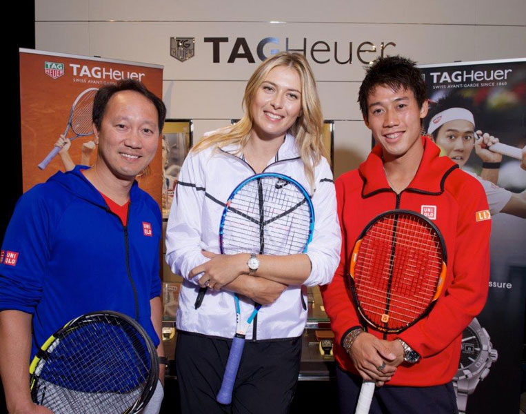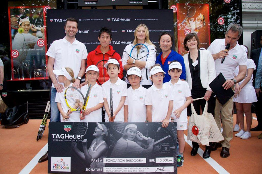 18 Mayıs 2015’te Roland Garros’un Fransa’daki Açılışı’na sayılı günler kala, dünyaca ünlü tenis şampiyonu Maria Sharapova ve başarılı genç Japon sporcu Kei Nishikori TAG Heuer’in çağrısıyla en anlamlı tenis turnuvasına katıldılar. Champs-Elysées’deki TAG Heuer butiğin önünde düzenlenen maçın hakemi, tenis dünyasının ünlü hakemi Michael Chang oldu.