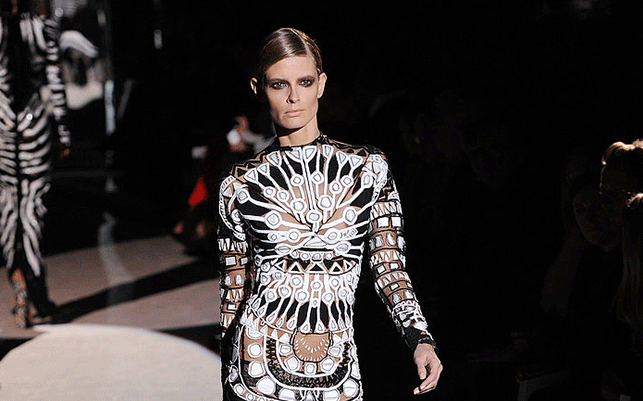 Moda haftasına tüm ihtişamıyla geri dönen Tom Ford, podyumdan uzak kalmanın ondan hiçbir şey götürmediğini bize kanıtladı. Hayvan desenli kürklerde ebatları iyice abartan tasarımcı, rengarenk payetlerle işlediği gece elbiselerin yanı sıra ondan beklemediğimiz sıra dışı tasarımlarla da şaşırtmayı başardı.