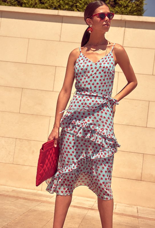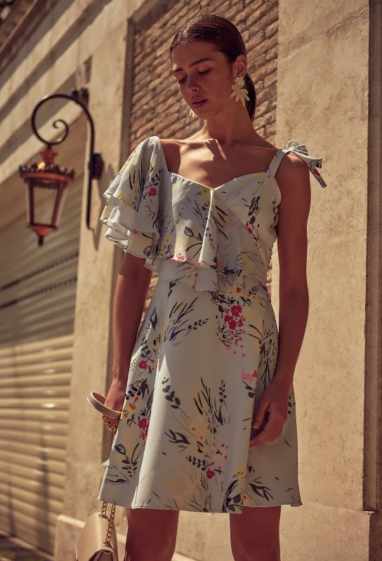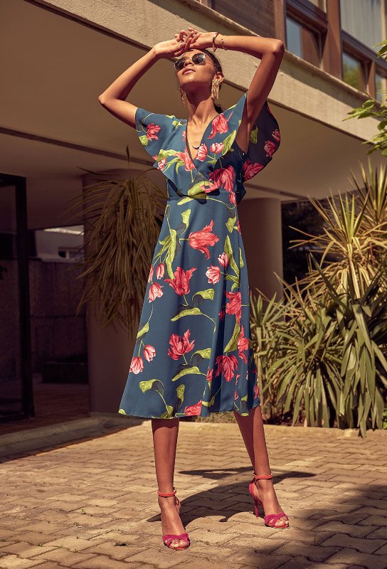 Kat?lman?z gereken ??k bir davet için ihtiyac?n?z olan floral desenli elbise i?te tam kar??n?zda. ?nce bantl? topuklu ayakkab? ise ideal e?le?meyi tutturman?z? sa?layacak.