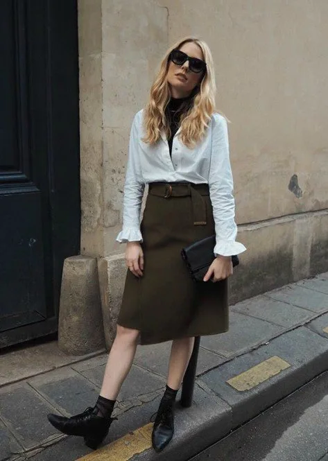 Düğmeleri yarıya kadar açık olan beyaz gömleğinizin içine ince triko bir kazak tercih etmeye ne dersiniz? @MEGANADELAIDE