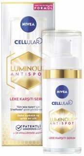 NIVEA Luminous630 Leke Karşıtı Serum, patentli Luminous630 formülü ile iki haftada* gözle görülür sonuç sağlayarak daha aydınlık ve ışıltılı bir cilde sahip olmaya yardımcı olur. İki kat daha fazla hyaluronik asit içeren*** formülüyle cildi dolgunlaştırır ve yoğun bir şekilde nemlendirir.