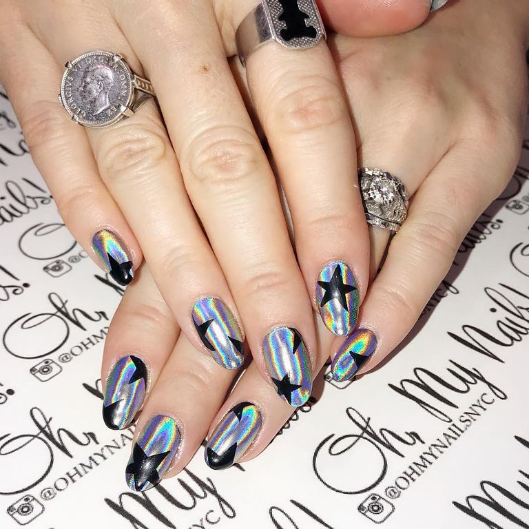 Kullan?n: PrettyDiva Rainbow Chrome Nail Powder; Sally Hansen Black Nail Art Pen