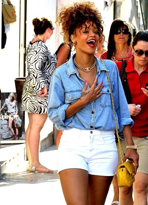 Rihanna’sız olmaz! Beyaz bir kot şort için en ideal kombinlerden biriyle karşımızda.