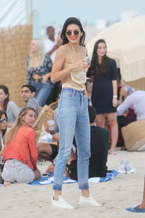 KENDALL JENNER Sneakerlar belki de kumsal için en iyi tercih olabilir ancak suyu test etmeyi düşünmüyorsanız deneyebilirsiniz.