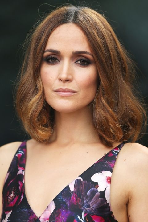 ROSE BYRNE Omuz hizası saçlarını derin karamel tonunda kullanarak modern bir hava yaratıyor.