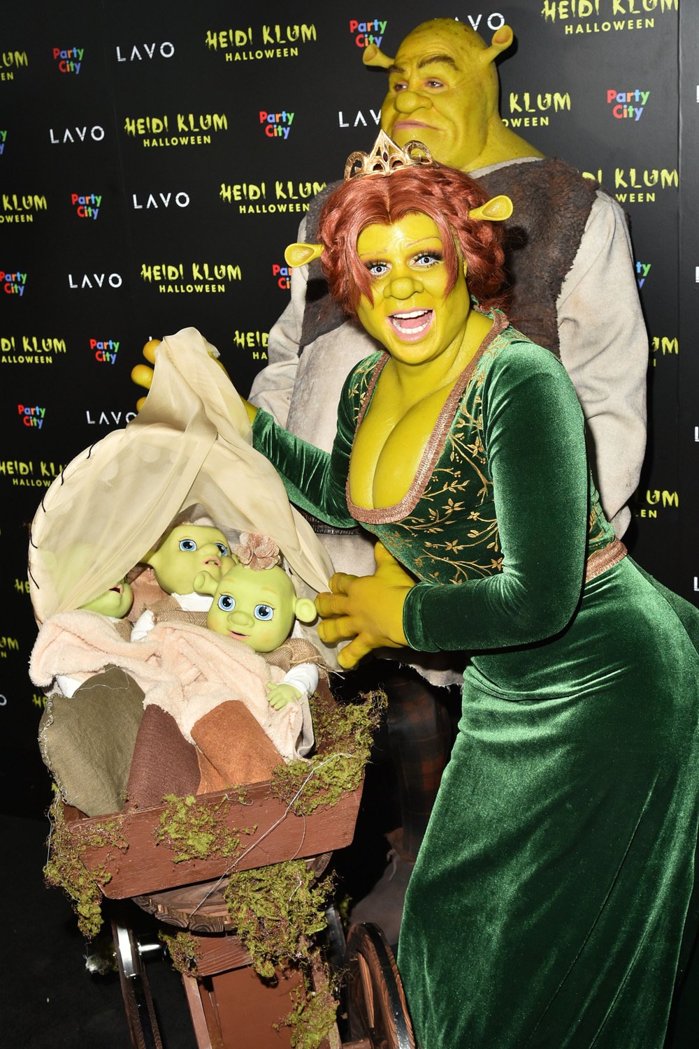 Heidi Klum ve erkek arkada?? Tom Kaulitz, ev sahipli?i yapt?klar? partide sevilen animasyon Shrek ve Prenses Fiona k?l???na girdiler.