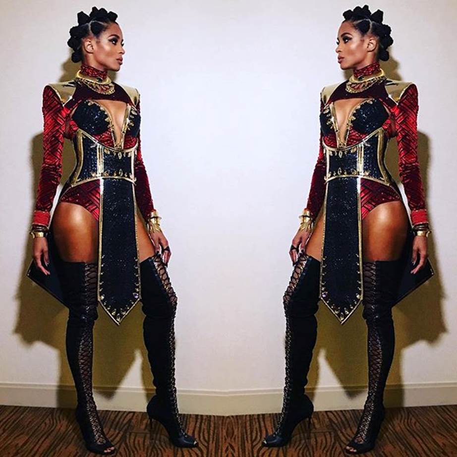 Ciara, Black Panther filminden Naika karakteri kostümüyle.