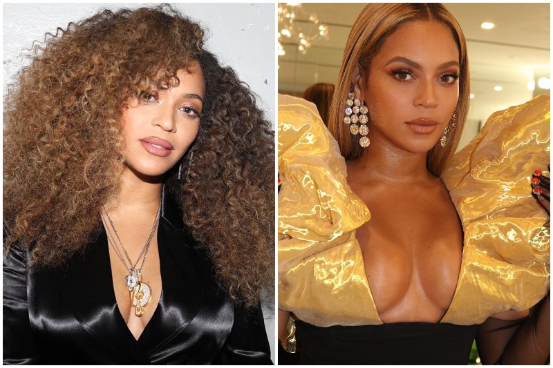 Beyonce artık saçlarını bal sarısı/karamel renginde ve düz fönlü olarak kullansa da kahverengi saçlarının kusursuz afro dalgalarını unutmak mümkün değil.