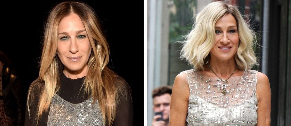 Uzun, küllü sarı saçlarıyla görmeye alışkın olduğumuz Sarah Jessica Parker; platin rengi yeni bob saçlarıyla oldukça dikkat çekici görünüyor.