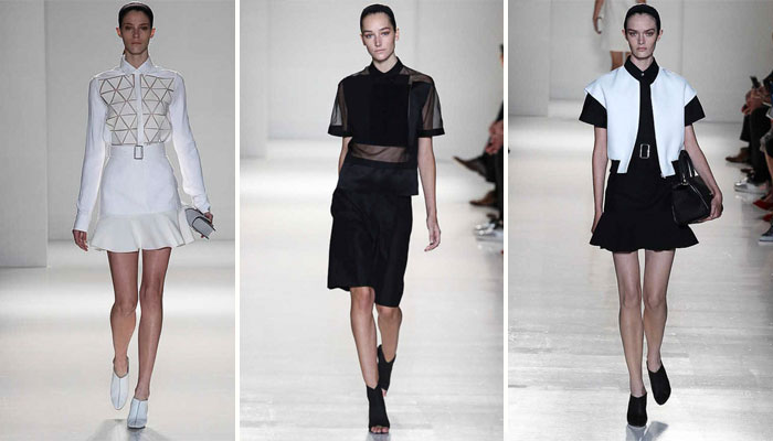 Hazırladığı her defileyle bizi kendine bir kez daha aşık eden tasarımcı Victoria Beckham, 2014 – 2015 İlkbahar / Yaz koleksiyonunda canlı renklere yönelmektense siyah ve beyazdan vazgeçmiyor. Peplum, transparan kumaş ve lazer kesim detayların ön plana çıktığı tasarımlar, şehirli kadınların yeni favorisi.