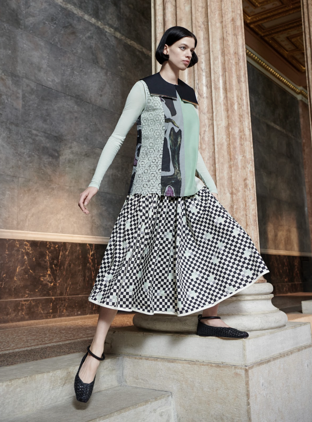 Ekoseler ve çizgiler Viyana modernizmine gönderme yaparken, zaman zaman dantel eklemeleriyle zenginleştirilmiş patchwork görünümü dikkat çekiyor. Elbiseler ve etekler eğlenceli ve kabarıkken, spor parçalar ise tipik prova sonrası rahatlığını lüks bir