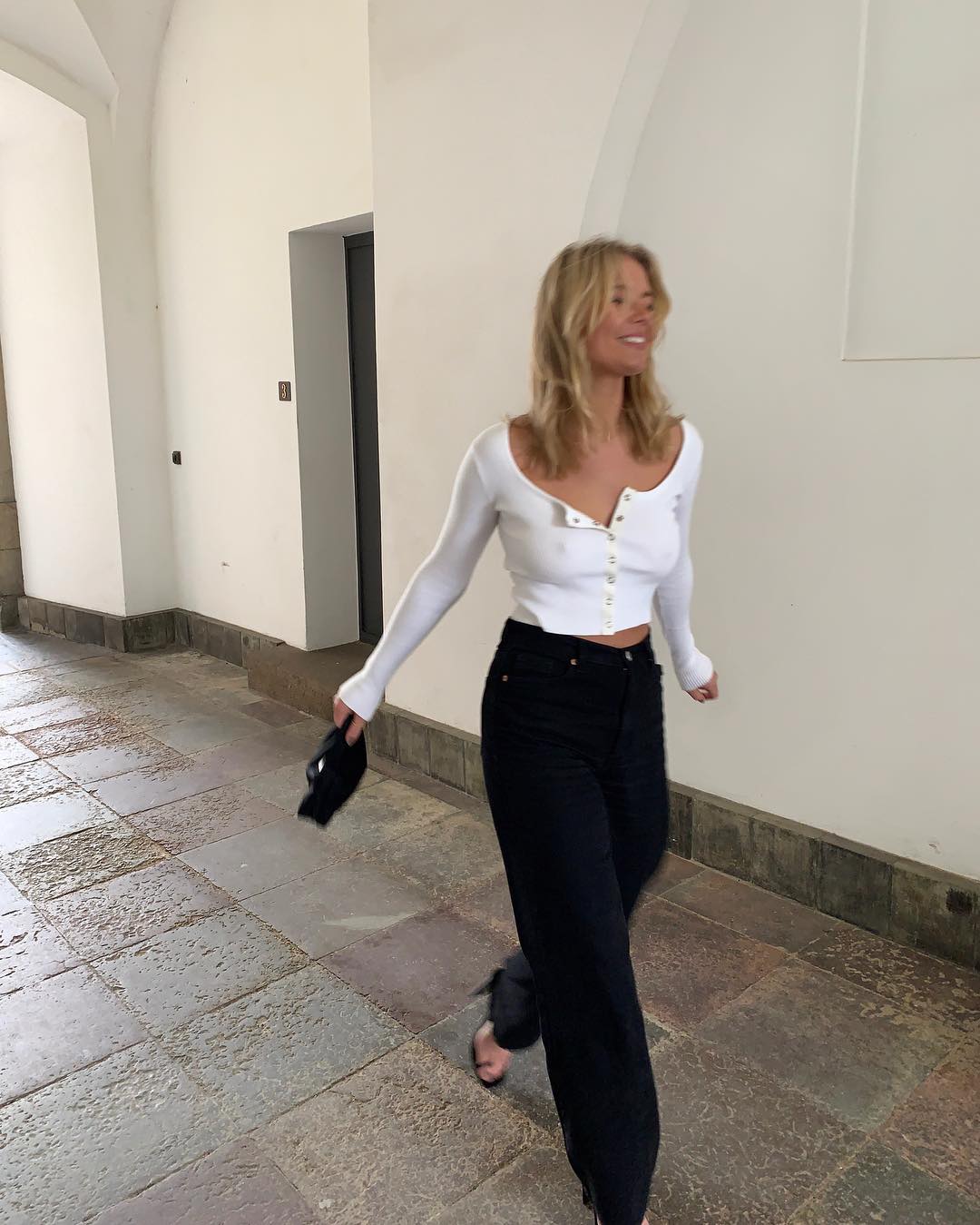 Siyah jean, beyaz üst ve siyah bantlı sandaletlerinizle çabasız şıklığı yakalayın.