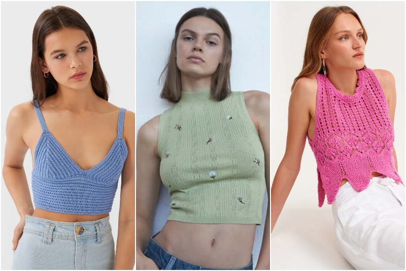 Influencer isimlerin son dönem kombinlerinin en havalı tamamlayıcıları triko ve örgü üstler! Crop, sırttan bağlı, boyundan bağlı, V yaka, kalp yaka, halter yaka, ajurlu fark etmeksizin dilediğiniz renk ve işlemede bu treni mutlaka yaz sonunda yakalamanızı öneririz!