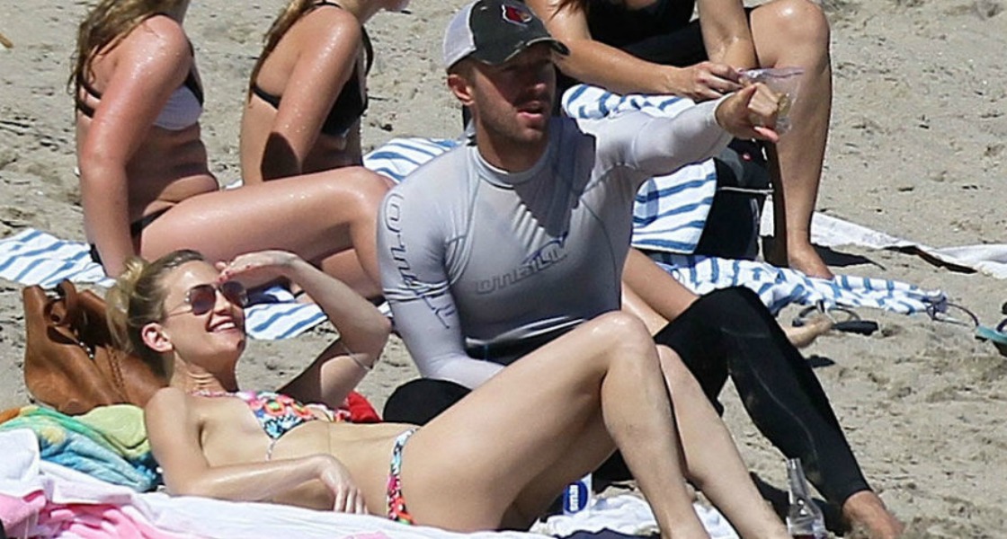 kate   Ünlü oyuncu Kate Hudson, Coldplay solisti Chris Martin ile birlikte plajda.