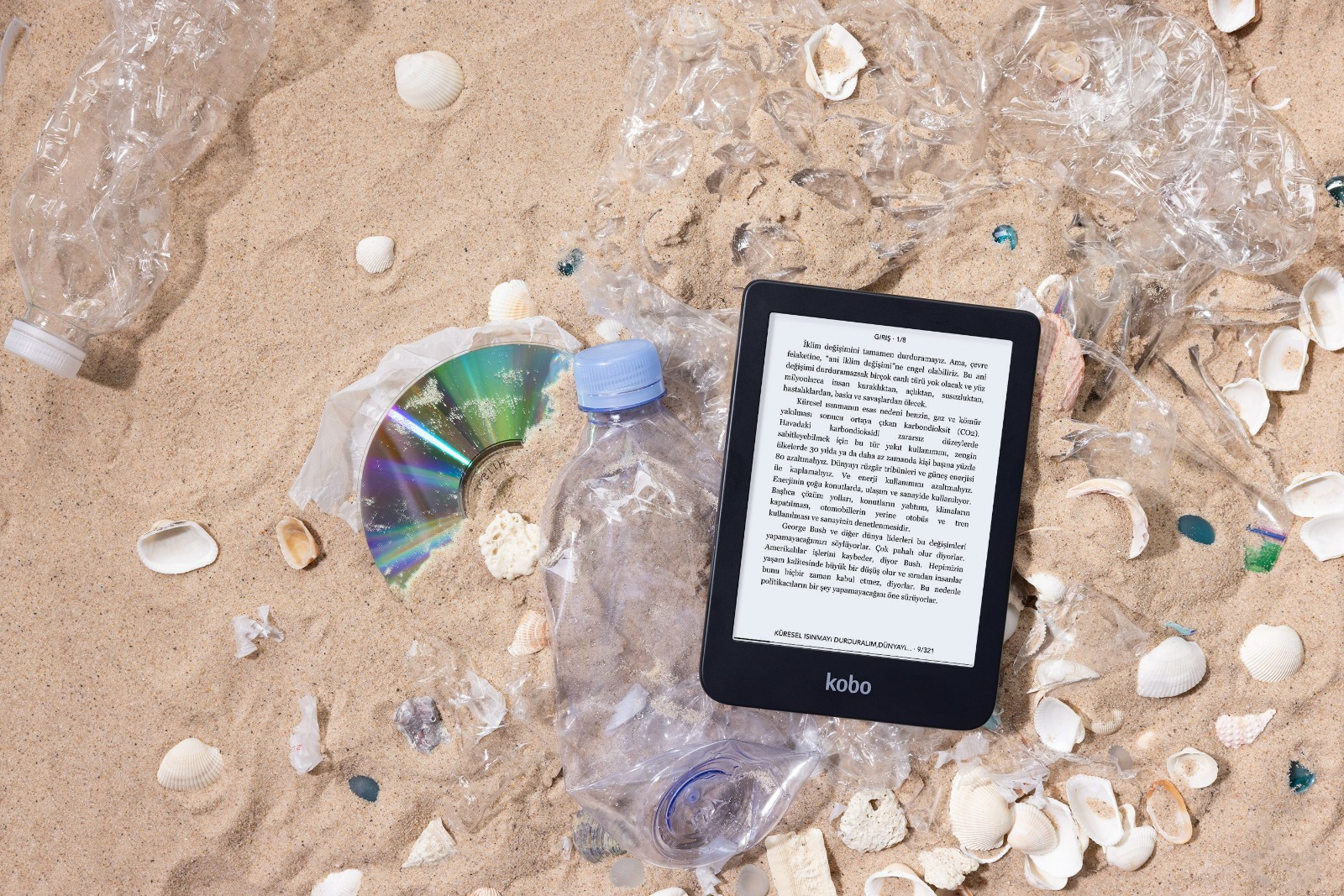 Kobo Clara 2E’nin dış yüzeyinin yüzde 85’ten fazlası geri dönüştürülmüş plastikten oluşuyor. ABD Çevre Koruma Ajansı’na** göre, 10 plastik şişenin geri dönüştürülmesi, bir dizüstü bilgisayarı 25 saatten fazla çalıştırmaya yetecek kadar enerji tasarrufu sağlıyor. Kobo Clara 2E’nin kaydettiği ilerleme yalnızca cihazla sınırlı kalmıyor, aynı zamanda mıknatıssız ve FSC sertifikalı geri dönüştürülmüş kağıttan yapılmış ambalajıyla da çevre bilincini koruyor.