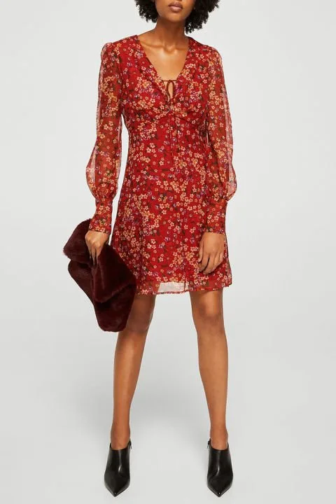 Bu elbiseyi siyah opak çorap ve botlarla kullanarak harika bir kış partisi görünümü elde edebilirsiniz. Mango