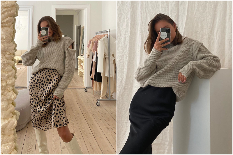 Şüphesiz ki bu trendin en iyi eşlikçisi saten kumaştan midi kalem etekler. Krem, bej, kahverengi, gri, siyah gibi her renge uyum sağlayan ve kışı yansıtan renklerden edineceğiniz bu etekler yine benzer renk tonlarındaki kazaklarınızla çok yakışacak. Hayvan desenlerinin de bu sezon trend olduğunu unutmayın! Bu görünümü diz altında topuklu çizmelerle tamamlayabilirsiniz.