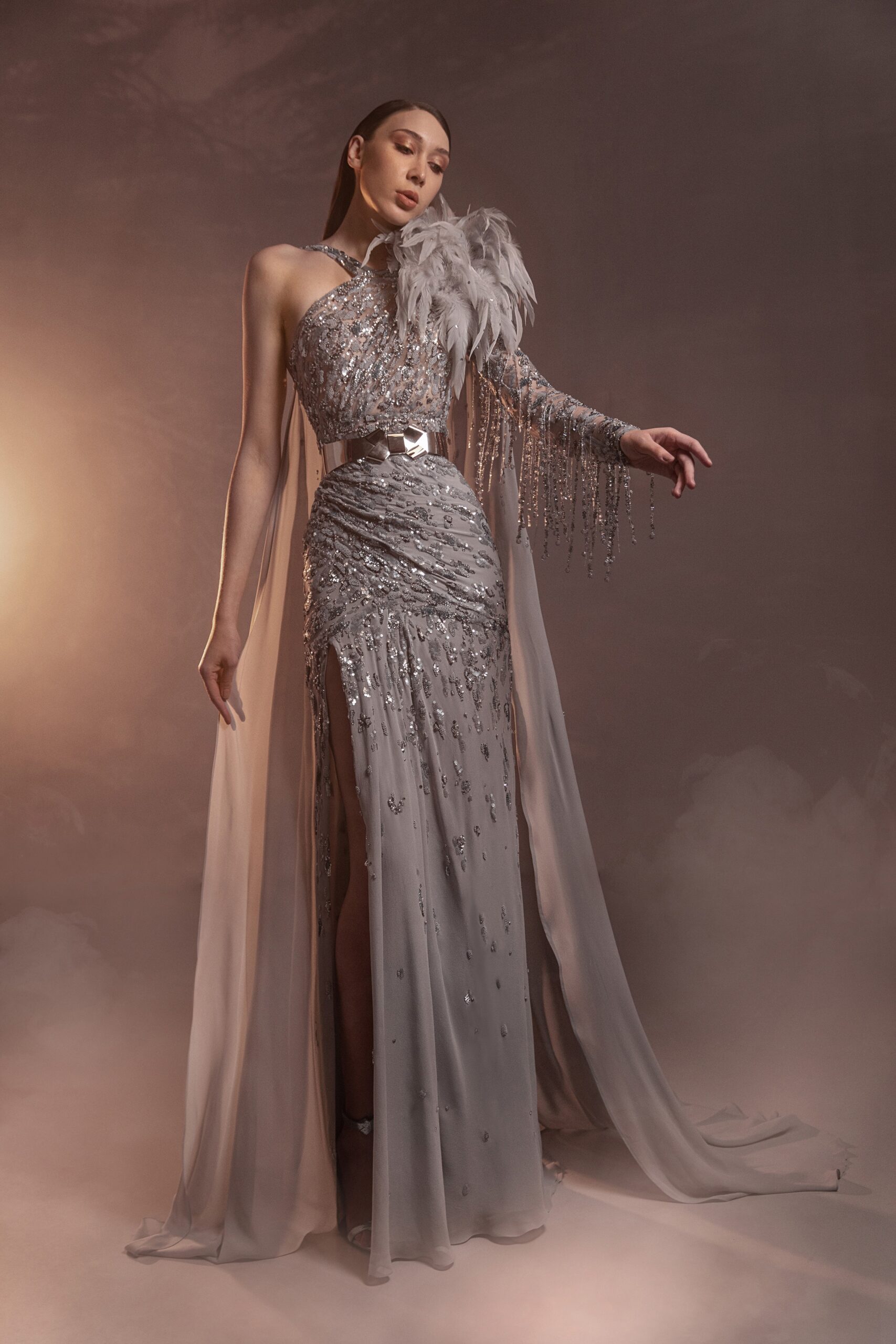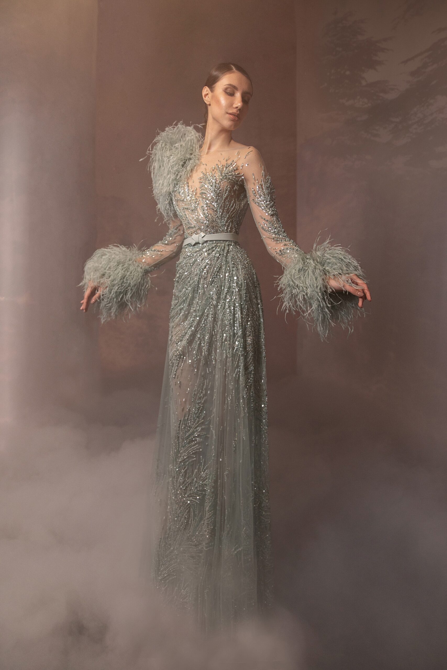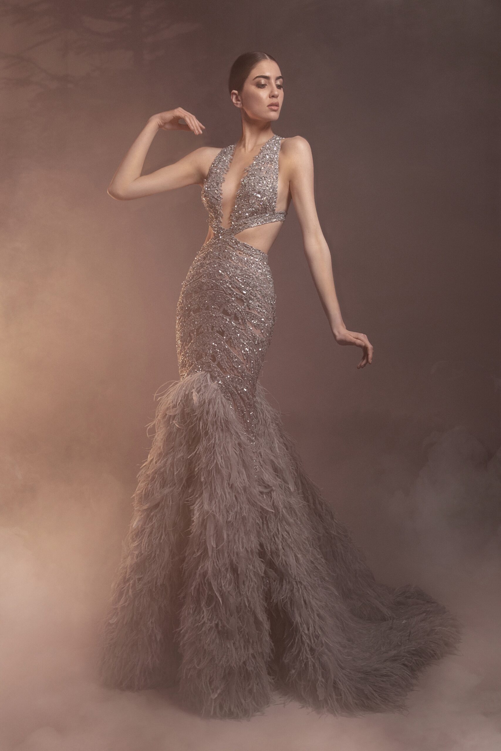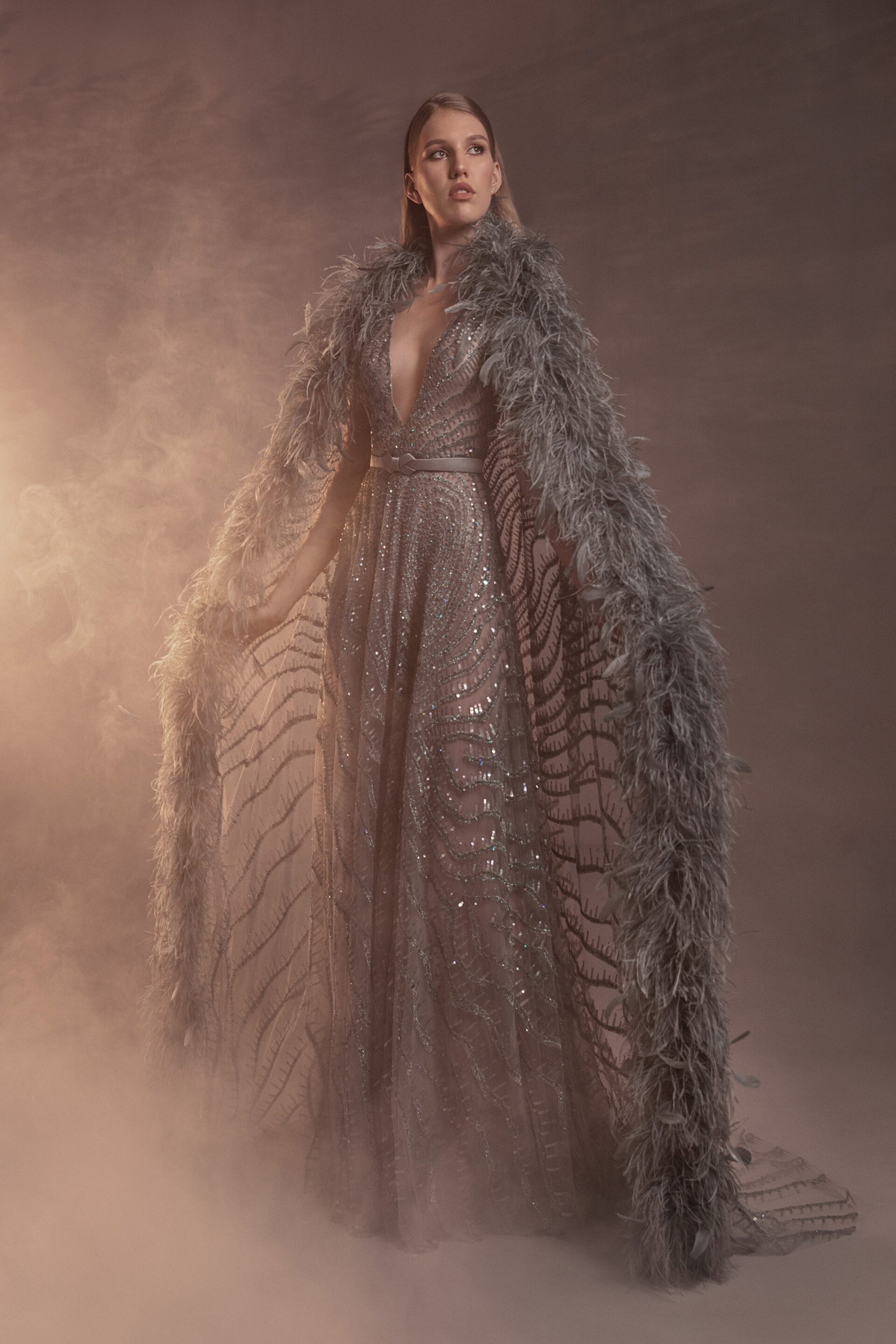 Murad’ın imzası haline gelen işlemeler ve tüylerin yanında tasarımcı bu kez Lurex’i de bazı tasarımlara dahil ediyor. Gümüş kaplama ve esnek 3D süslemeler ise, yaz aylarında ay ışığının dağlara yansımasını taklit etmek için öne çıkıyor.