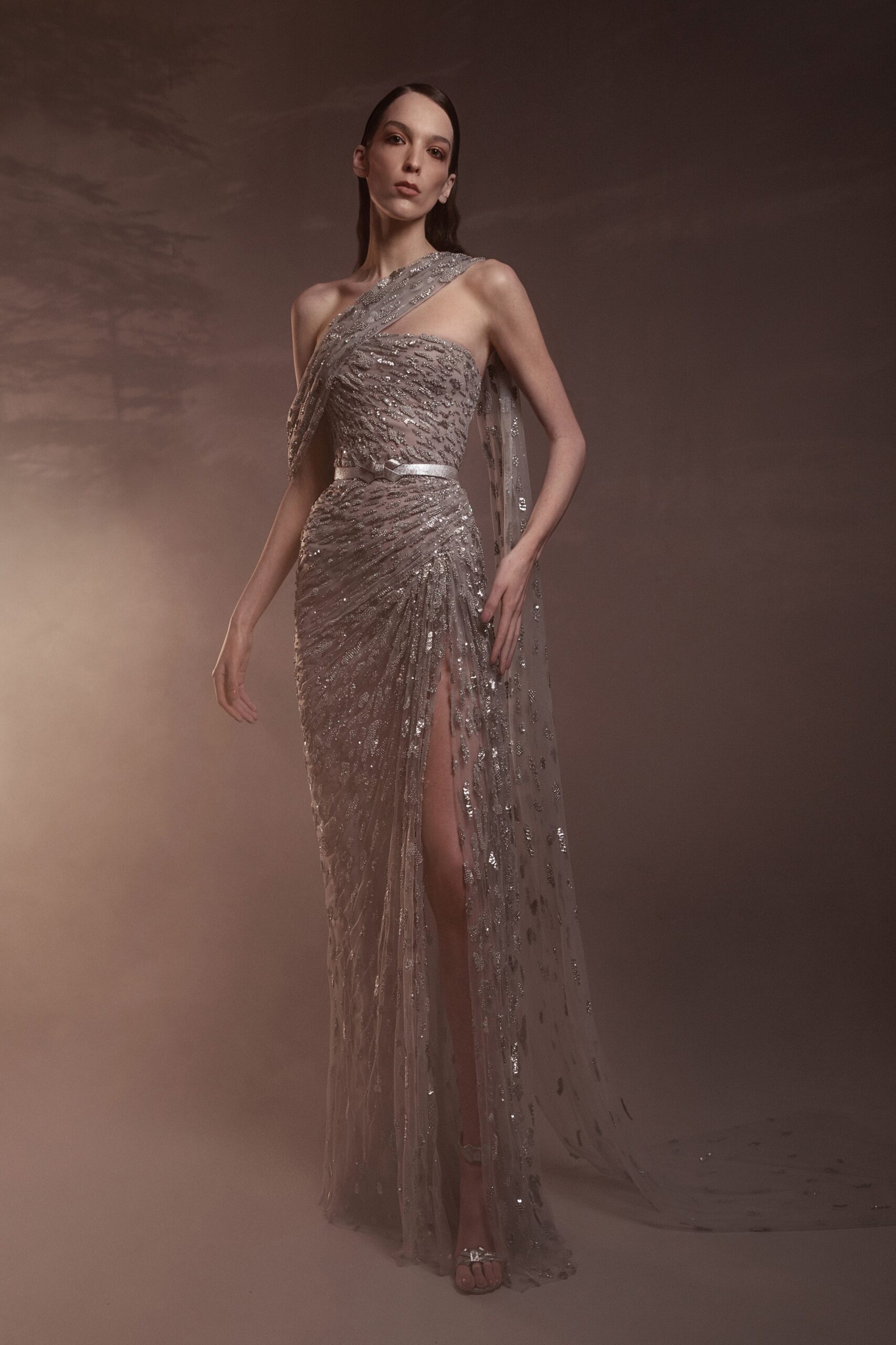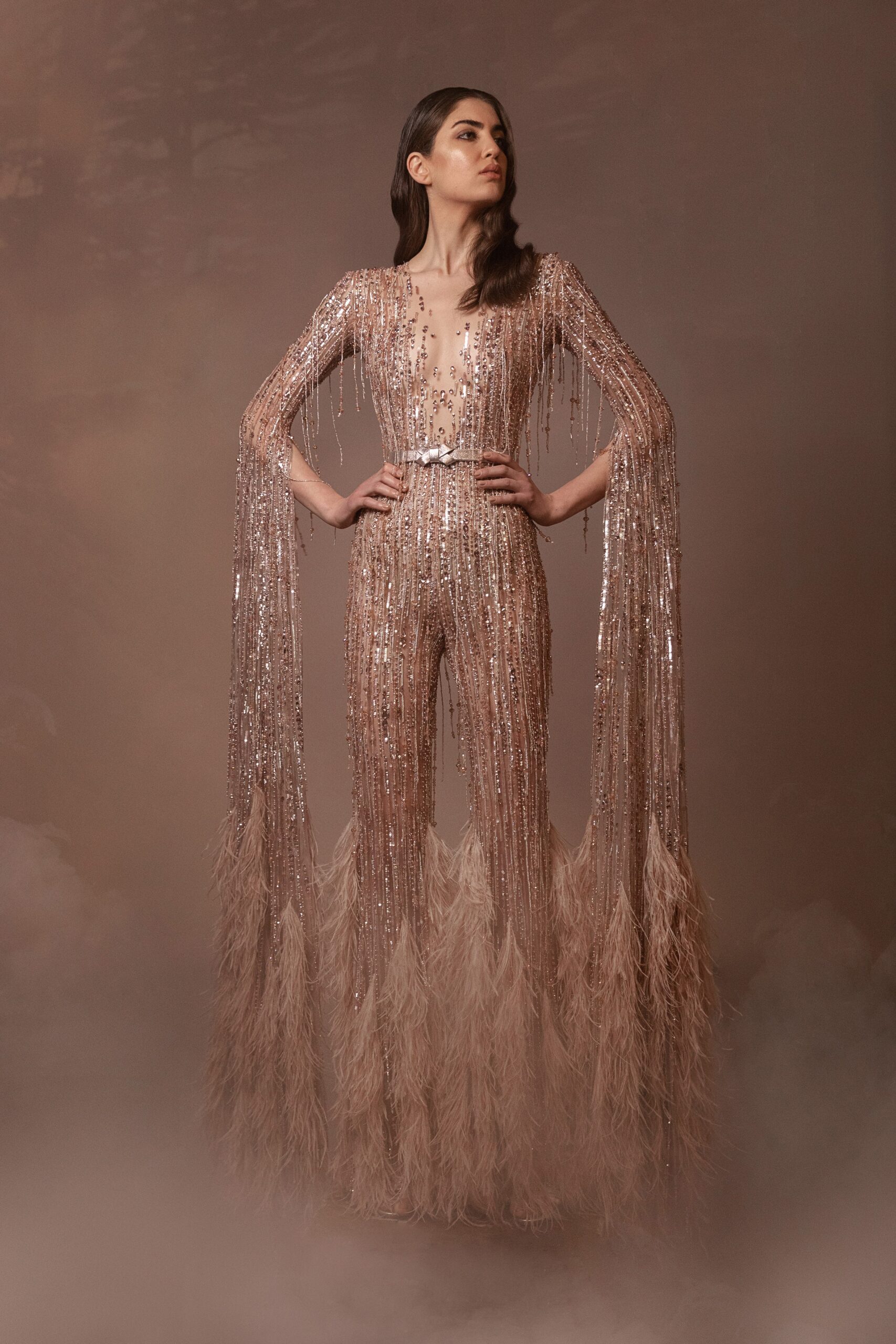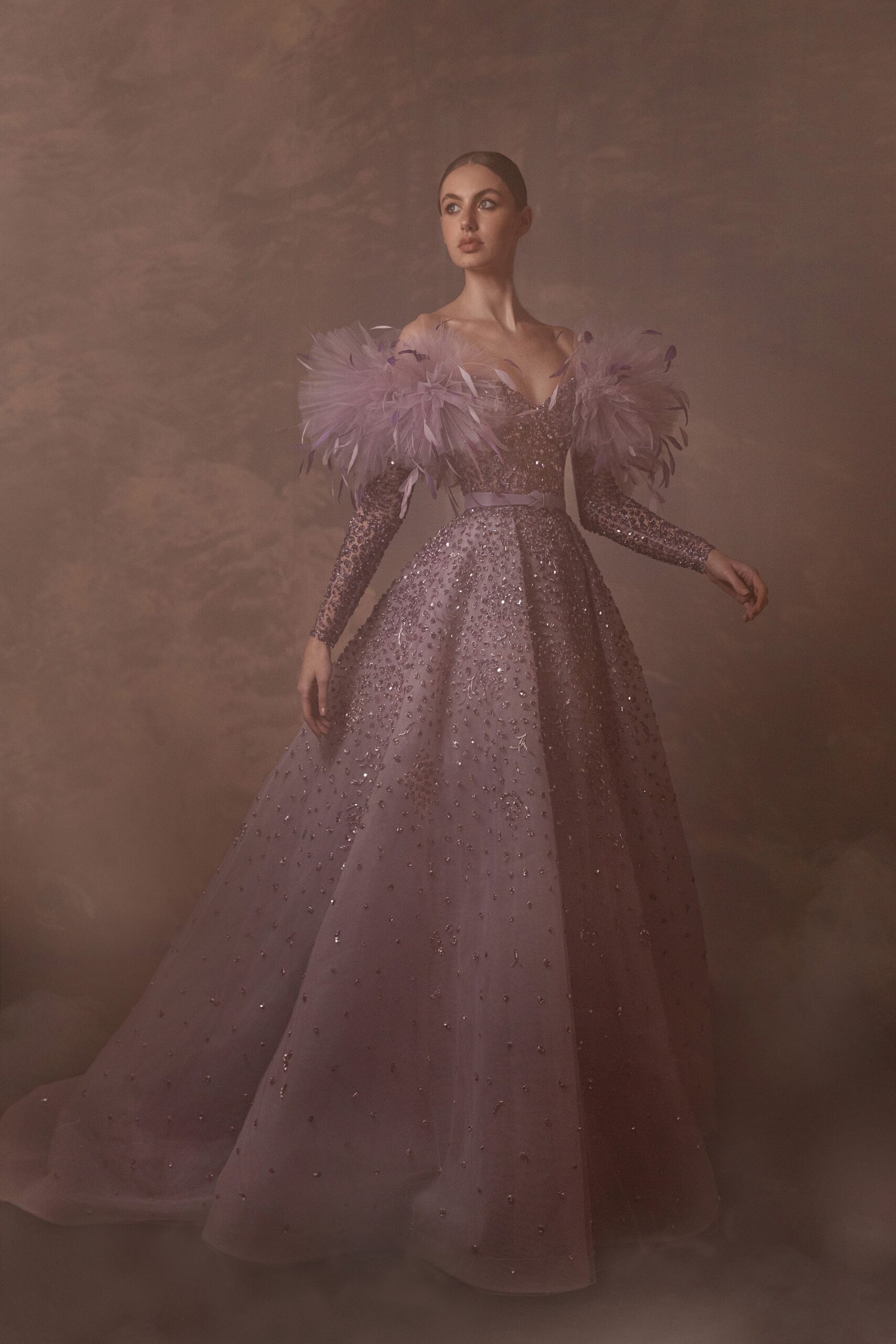 Murad’ın imzası haline gelen işlemeler ve tüylerin yanında tasarımcı bu kez Lurex’i de bazı tasarımlara dahil ediyor. Gümüş kaplama ve esnek 3D süslemeler ise, yaz aylarında ay ışığının dağlara yansımasını taklit etmek için öne çıkıyor.