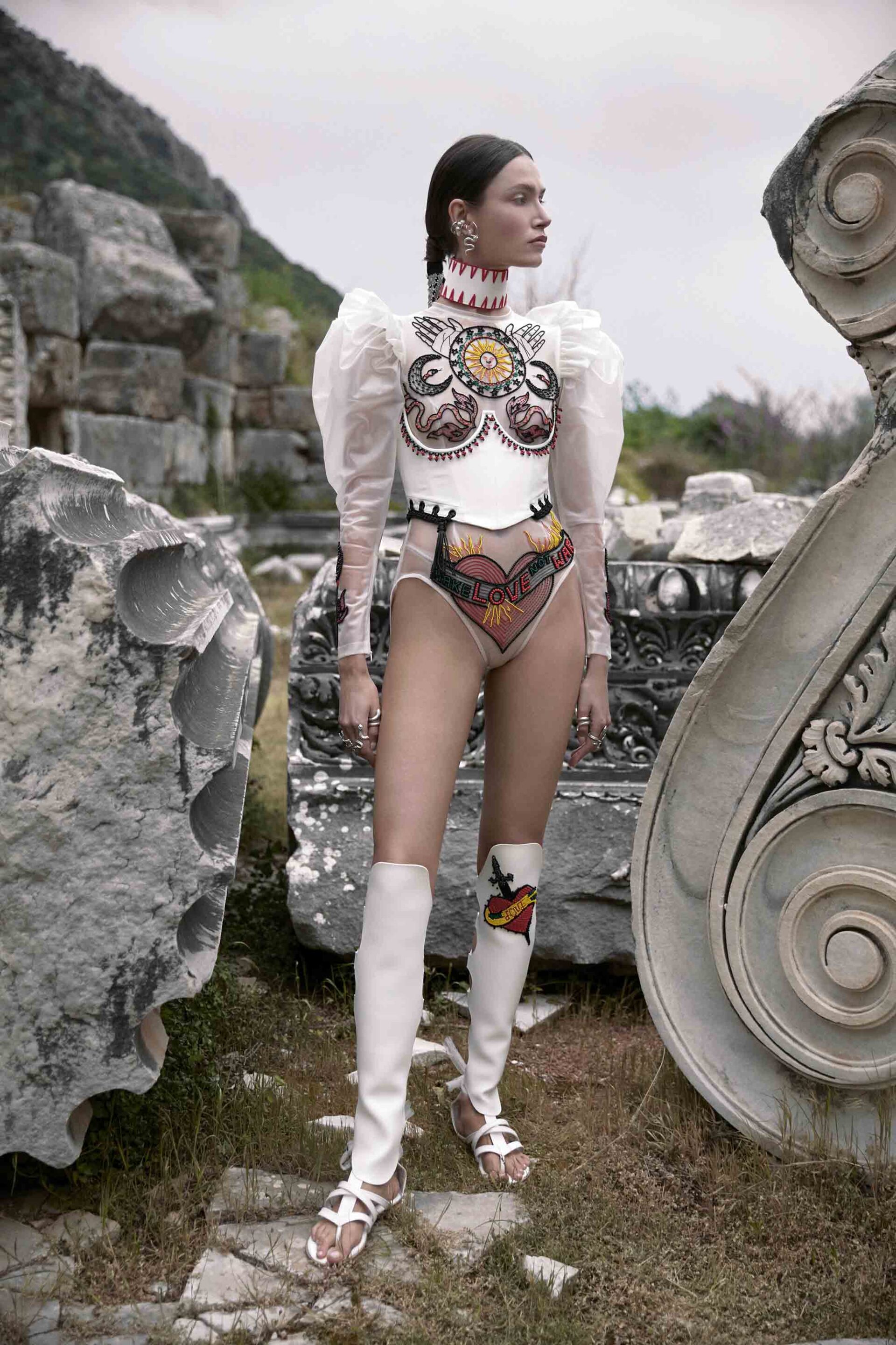 Zeynep Tosun, 2021 Yaz Couture koleksiyonunda bu kez Mitolojiden ilhamını alıyor. “Apasas” adını taşıyan koleksiyon yüksek işçiliği gösterişli detaylarla buluşturuyor. Feminen güce övgüde bulunan Apasas koleksiyonu; cut-out detaylar ve işlemelerle oldukça büyüleyici.